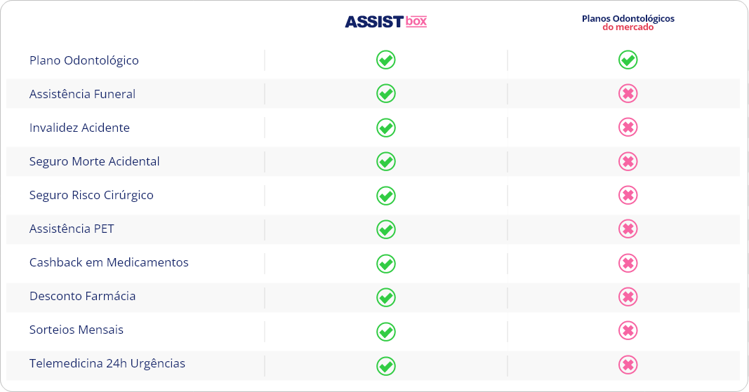 O AssistBox é um conjunto com + de 10 benefícios que inclui: